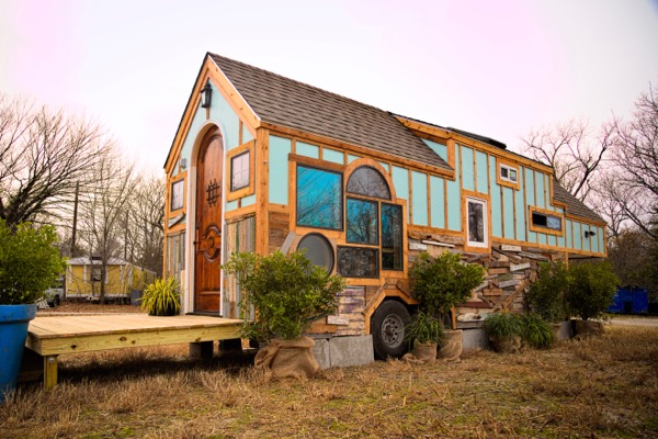 The project was featured on the fyi Network’s Tiny House Nation, which also helped with materials and design. Show hosts, Zack Griffin and John Weisbarth, created a pulley system for the deck that simply folds it up when it’s time to move – and move it does. The entire 32-foot-long home is cantilevered on a 24-foot gooseneck trailer that can be hauled behind a pickup truck for easy transport. For now, The Perch resides on the 20-acre Rogers Wildlife Rehabilitation Center in Hutchins. Founder and owner, Kathy Rogers, welcomed the couple with open arms.