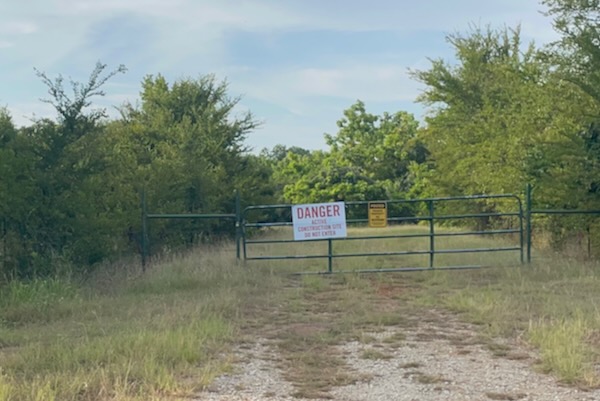 A sign warns of ongoing construction begun by the developer at the former Fairfield Lake State Park property despite the state's threat to use eminent domain to preserve it as a park. Photo courtesy of Misti Little.