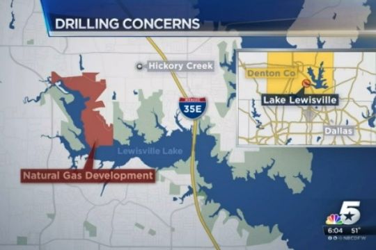 The U.S. Bureau of Land Management, the agency that handles drilling rights on public lands, was considering allowing fracking on the northwest side of Lake Lewisville. Photo courtesy of DFW NBC5.