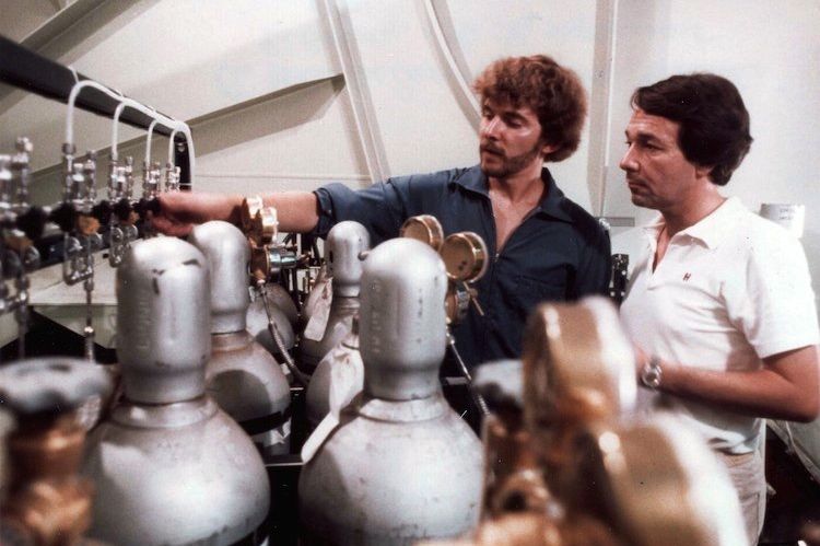 Exxon's Richard Werthamer (right) and Edward Garvey (left) are aboard the company's Esso Atlantic tanker working on a project to measure the carbon dioxide levels in the ocean and atmosphere. The project ran from 1979 to 1982. Courtesy of Richard Werthamer/Inside Climate News