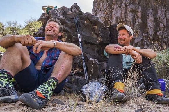 Photographer Pete McBride, left, and writer Kevin Fedarko take a break during one leg of their 750-mile hike of the Grand Canyon. Photos courtesy of filmmakers.