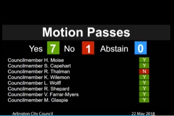 The vote passed 7-1. The one “no” vote was cast by Roxanne Thalman of District 3.