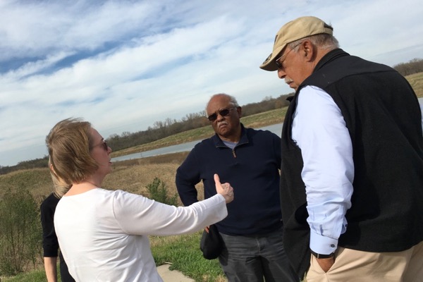 Dallas Sierra Club activist Chris Guldi talks with General Russel Honoré, right, and Israel Anderson, a former EPA Region 6 associate director, while touring Joppa, a neighborhood in south Dallas overshadowed by industrial plants. Photos by Julie Thibodeaux.
