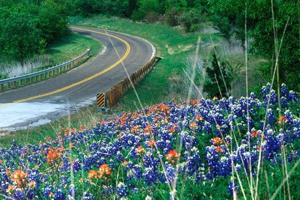 Wildflowers line the park road at Cedar Hill State Park in Cedar Hill. Courtesy of Texas Parks and Wildlife Department.