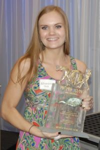 Alexandria Beck, the youngest honoree at the Green Source DFW Sustainable Leadership awards, beat out a roster of worthy competitors to win volunteer of the year for her work with the University of North Texas group Mean Greens for Animals.