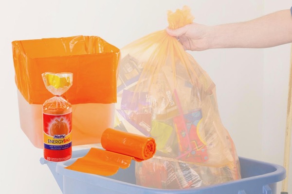 Plastics like candy wrappers and potato chip bags, would be collected in bright orange Hefty EnergyBags, which themselves are not currently mechanically recyclable. These would be sorted and baled at a materials recovery facility and shipped to local energy recovery companies for conversion at pyrolysis, gasification and cement kiln facilities.