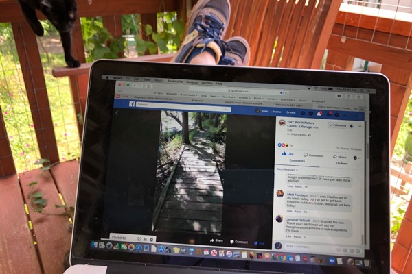 Rob Denkhaus, Fort Worth Nature Center manager, says they started at the beginning of April taking their regular guided hike event online. Instead of the usual half-dozen folks attending on Wednesdays at 10 a.m., they had 1,200 viewers going on the walk. The next week there were 2,400 views on their Facebook page.
