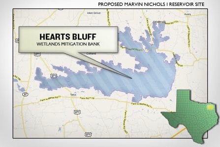 "The primary impact of the proposed Marvin Nichols Reservoir on wildlife habitat would be the inundation of habitat by the reservoir," reads the dry but direct assessment, prepared by the engineering firm Freese and Nichols. (The reservoir is named after a former partner at the firm and one of Texas' first water planners.) "Cultural resources," including dozens of prehistoric sites, would also face "inundation." But the report concludes that only a tiny percentage of prime farmland and timberland would have to be flooded.
