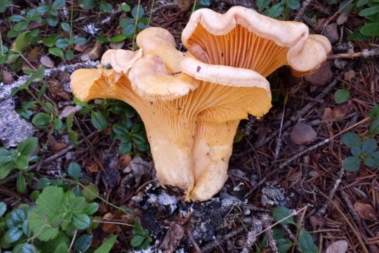 Chanterelle mushrooms is an edible mushroom, which emits a fruity aroma, reminiscent of apricots and a mildly peppery taste. -Wikipedia