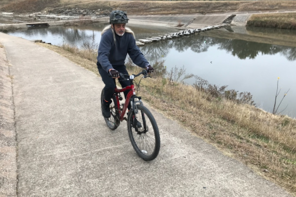 Biking enthusiast Tom Frye of Fort Worth rides the Trinity Trail along the Clear Fork in Fort Worth. Photo by John Kent.