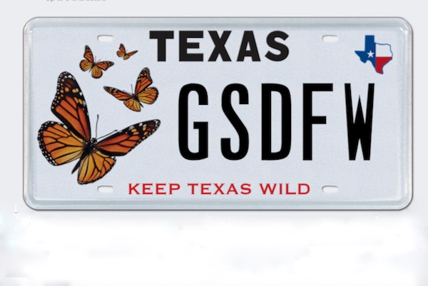 The Monarch Plate, launched in June, is the 10th offering of the Texas Conservation Plate program. Image courtesy of Texas Department of Motor Vehicles modified by GSDFW.