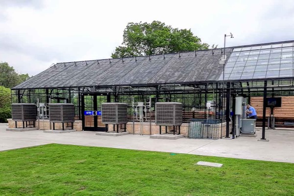 The completion of the 1,080-square-foot greenhouse learning center built to house the compost test bins is expected to hasten the testing of how rapidly different samples of biodegradable food packaging break down. The various scenarios recreated in the facility include a commercial composting facility, a home composting bin and several types of soil.