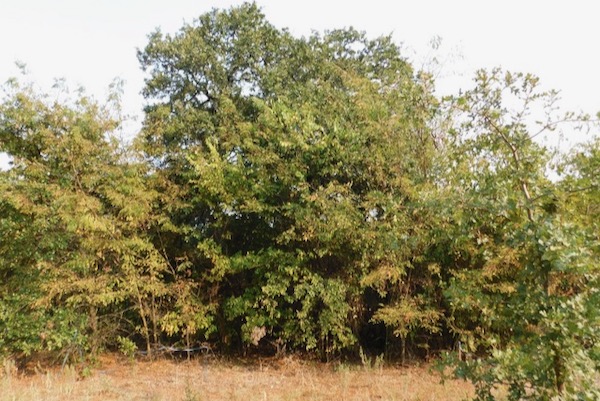 Some large post oaks at Sheri Capeheart Nature Preserve in Arlington were engulfed by privet. See how volunteers freed one of the oak trees in photo at the end of article. Photo by Jim Frisinger.