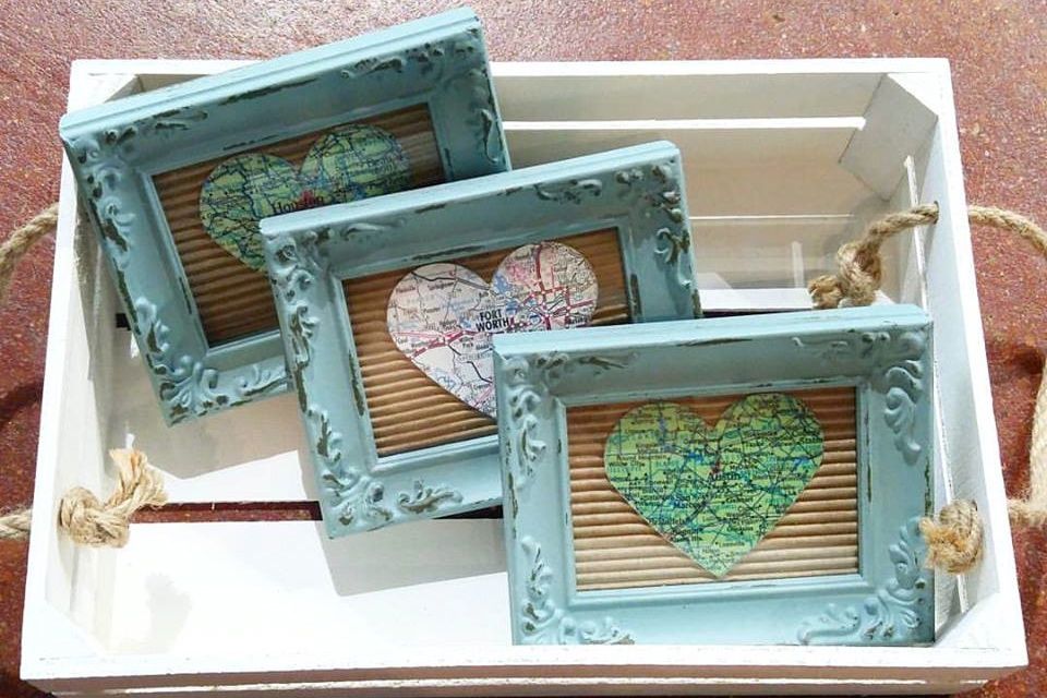 Kristin Moore of the Y'all Shop makes handmade map art made with genuine maps. Nathan Clewell of Ross + Moster also makes furniture made from reclaimed wood and steel.