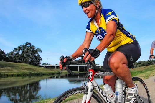 Bicycling enthusiast Fort Worth Mayor Betsy Price on the Trinity Trails in Fort Worth. Courtesy of SquareMeals.org.