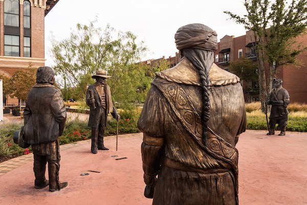 In 2021, the City of Grapevine installed Peace Circle, featuring 10 tribal leaders in a circle with Republic of Texas President Sam Houston, in front of Grapevine City Hall. Photo by J.G. Domke.