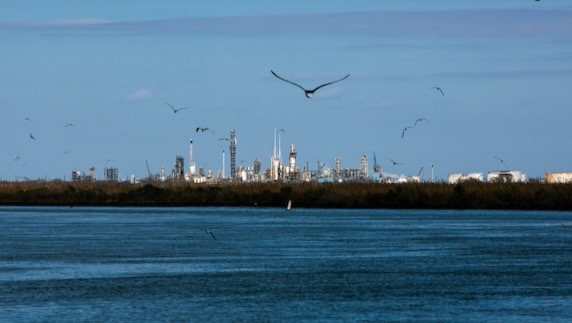 A view of Dow’s Seadrift chemical complex from the Victoria Barge Canal in Texas on Feb. 1. Photo by Dylan Baddour | Inside Climate News.