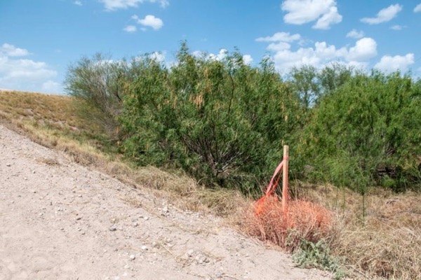 A survey stake on land in the center of the National Butterfly Center where the border wall will be built. Photo courtesy of Marianna Trevino-Wright/National Butterfly Center.