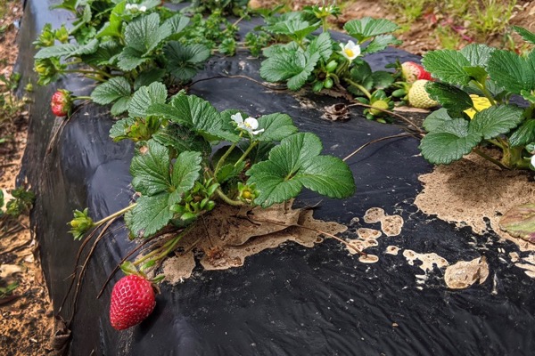 The organic strawberries should be ready to pick by the end of the month at Storm Farms located on the edge of Arlington, in Dalworthington Gardens. Photos by J.G. Domke.