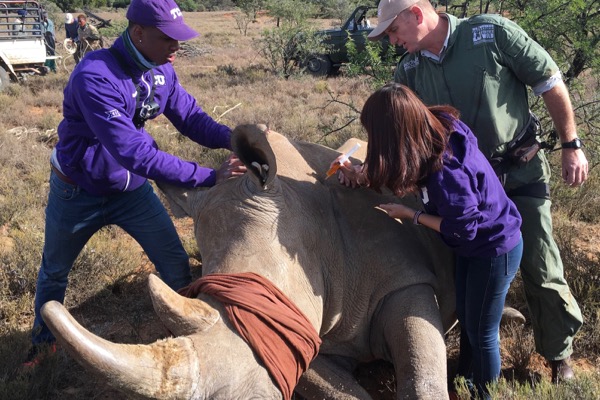 “It's a program that we run in the Eastern Cape in South Africa focused on a broad, multi-faceted approach to help solve the rhino poaching crisis. We are part of a group of NGOs, government agencies, private reserves and other stakeholders with a singularity of purpose to help preserve rhinos in the wild by bringing together conservation, rhino management, community projects, protection and law enforcement. It also is focused on getting TCU students into the field in South Africa during study abroad experiences,” says Slattery.