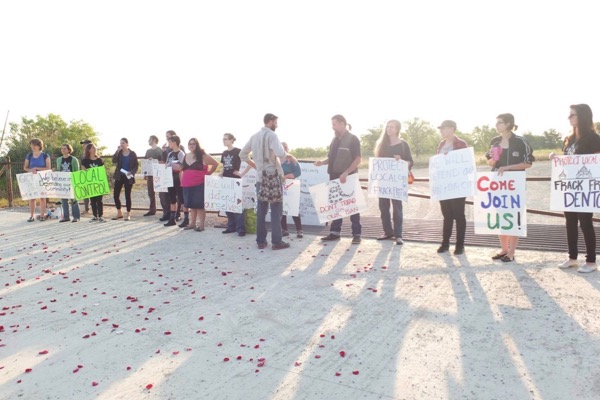 Frack Free Denton protesters June 2015 at the Vantage Energy drill site in Denton. Courtesy of Frack Free Denton.