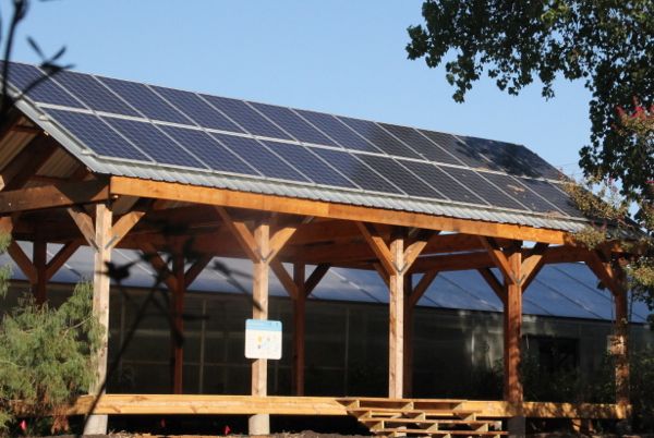 Texas Discovery Gardens at Fair Park flipped the switch last week on a new 410-square-foot solar array atop a cedar pagoda, home to the garden’s new Natural Learning Center.