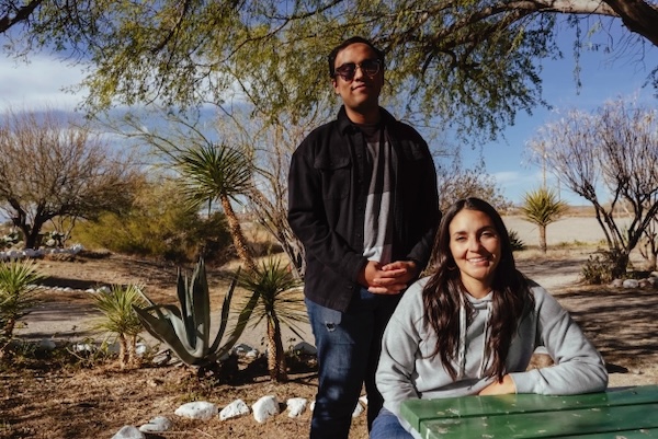 Ramon Rodriguez, Founder of Project Homeleaf and Elvira Hermosillo, Big Bend Conservation Alliance Programs Director pose for a photo in Presidio in January. Photo by Sarah M. Vasquez for The Texas Tribune.