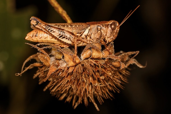 Humans have been bugged by insects for thousands of year but we actually need them to survive. Above, a grasshopper sits atop a dried flower. Photo by Meghan Cassidy.
