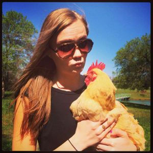 Alexandria Beck and pet chicken